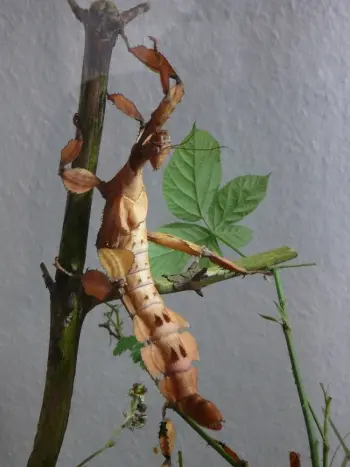 Mein ausgewachsenes Weibchen Australische SchreckenBesonders gut funktioniert dies bei Wespen und dicken Fliegen, die einem ganz schön den Tag versauen können, wenn sie planlos und gleichermaßen gestresst wie wir, vergeblich den Ausgang suchen. Man braucht aber nicht gleich an Mord und Totschlag zu denken und den armen Tierchen mit Fanggläsern oder Fliegenklatschen hinterherhechten.